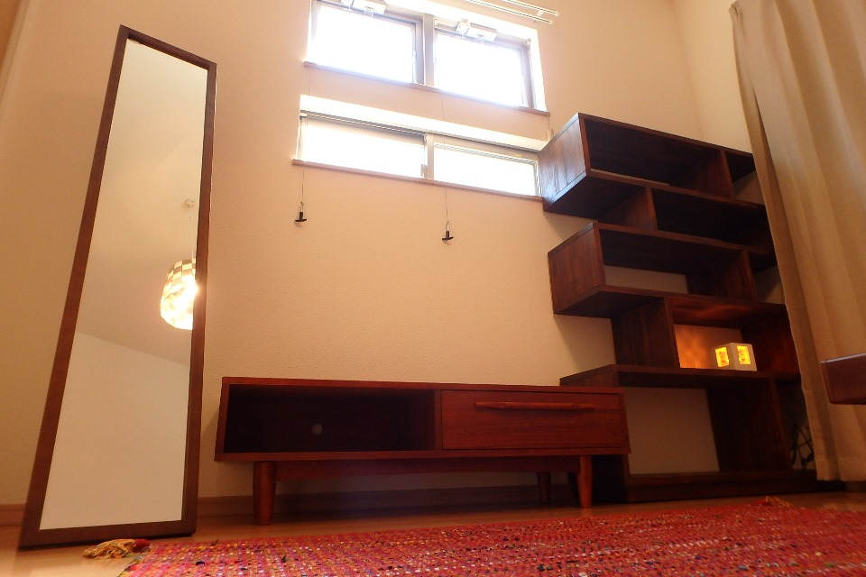 こちらのお部屋には、あかりとり用のスリッド窓があるのですが、家具で塞いでしまわないよう配慮しました。