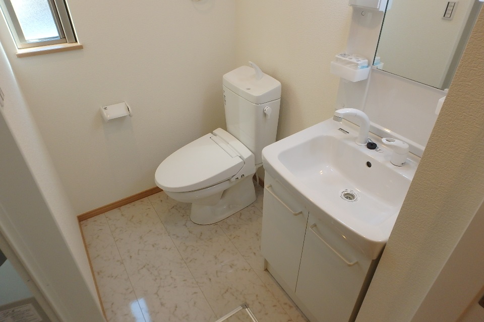 トイレと洗面台が一室にまとまった機能的な間取りです。