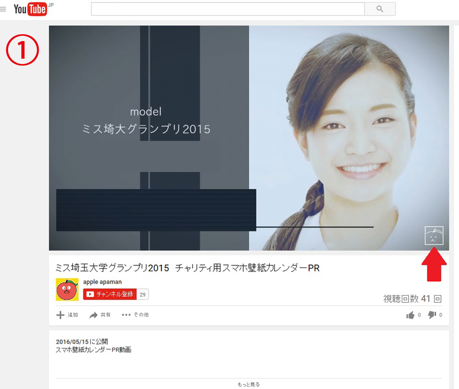 画面の右下に透かし画像を表示させました。パソコンで見るYouTube動画で見ると、スタートから8秒後に表示するように設定しました。