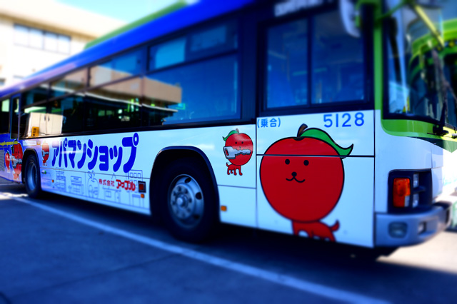 路線バスをラッピングして、アパマンショップバスにぷる太くんが!  アプリにもなっています♪ AppStore→ 「ぷる太の賃貸2 GooglePlayストア→「ぷる太の賃貸2