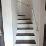 階段には手すりがついています。踏み板も色分けされていて歩きやすくなっています。