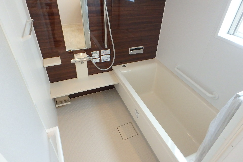 1坪タイプの浴室。クッション性のある床材が採用されています。