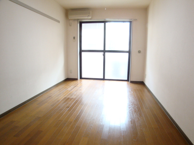 室内は約7帖のフローリング床。一人暮らしにはちょうどいい広さです。大きな窓によって室内がより広く感じられます。収納スペースもしっかりと確保されており、荷物をしまっておけます。