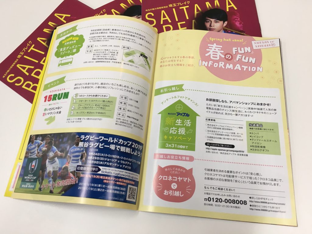 埼玉県の魅力情報発信誌「埼玉ブレイク」に、当社の「新生活応援キャンペーン」を掲載していただきました。