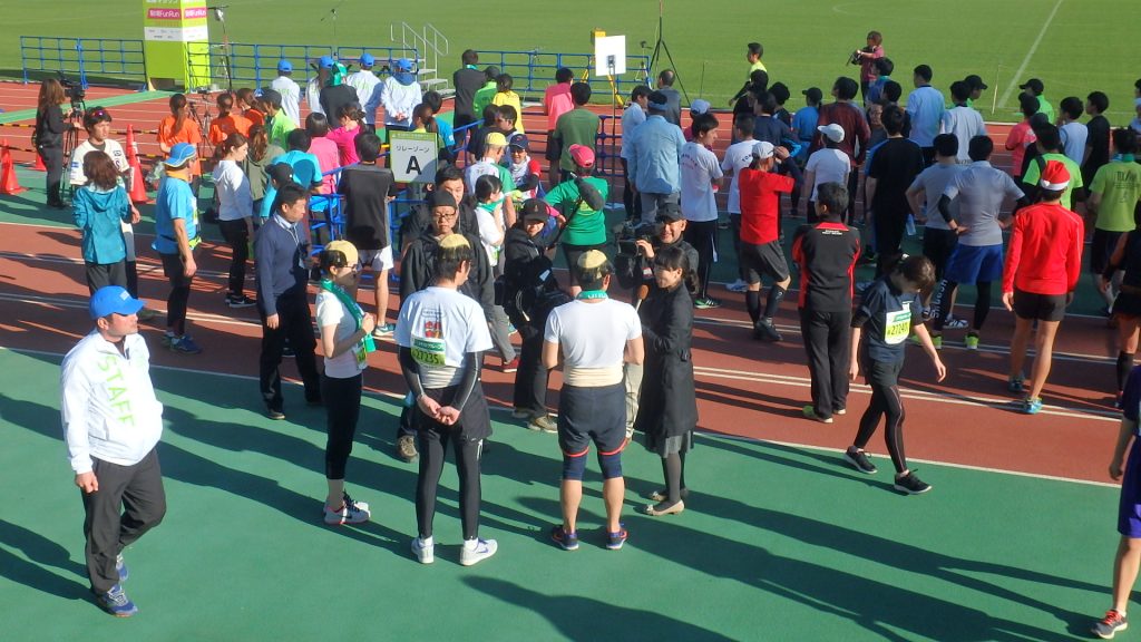 リレー形式で1.2キロずつ走るので、インターバルの選手も数多くいます。