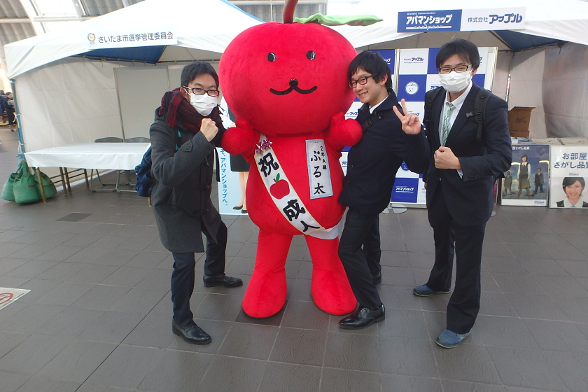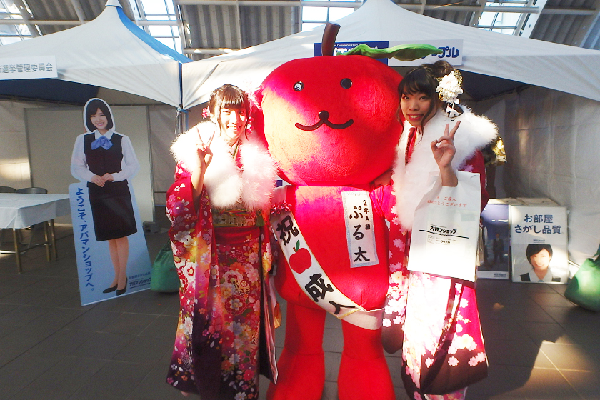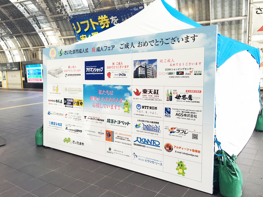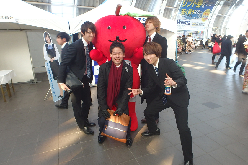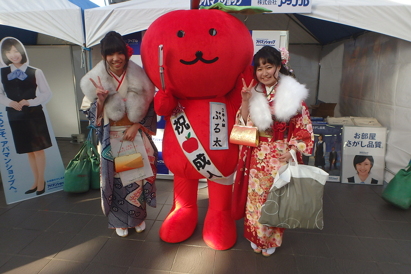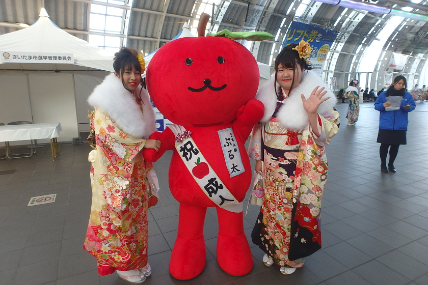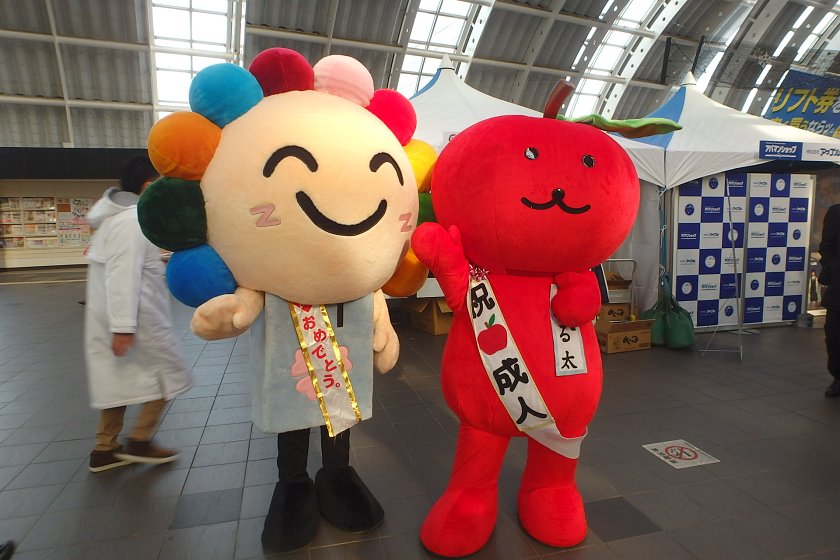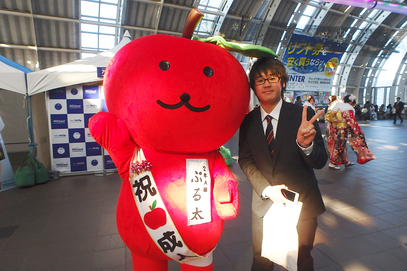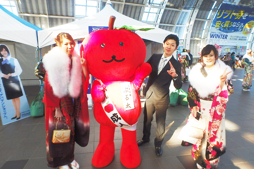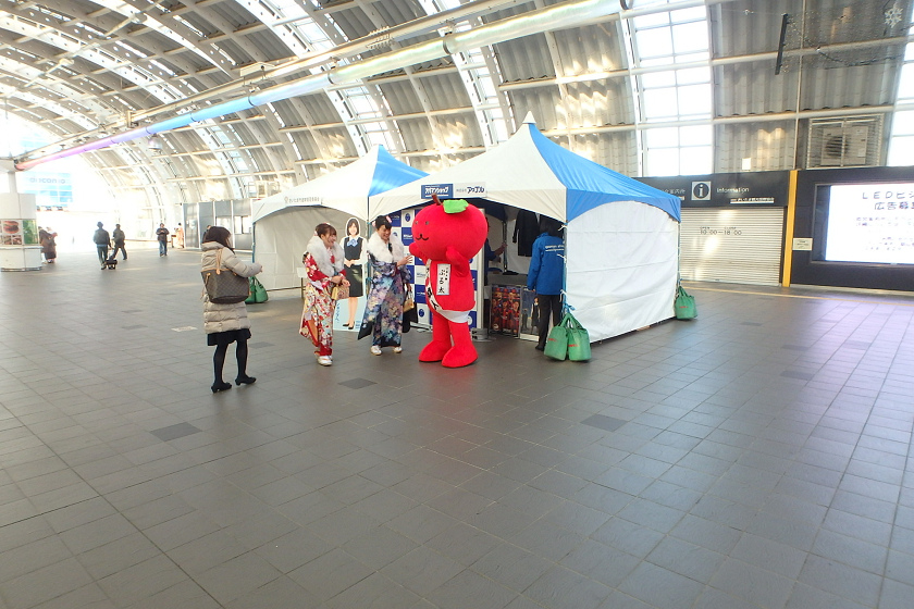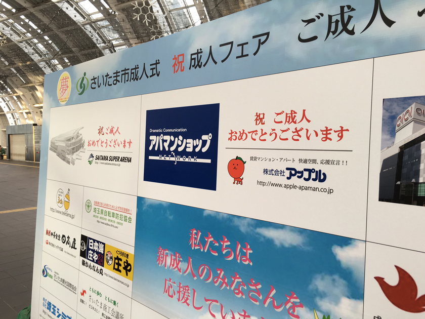 当社、株式会社アップルでは、さいたま新都心駅の改札付近のイベント会場にブース出展させていただきました。当社の公式キャラクター「ぷる太」と新成人のみなさんと記念撮影大会を開催いたしました♪