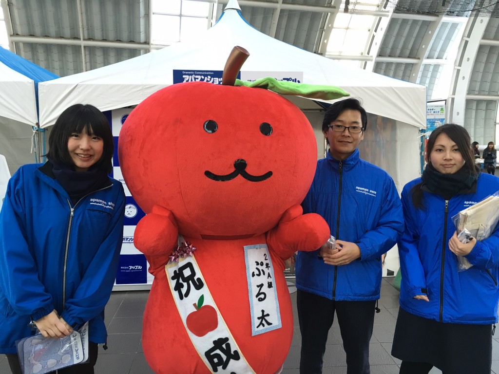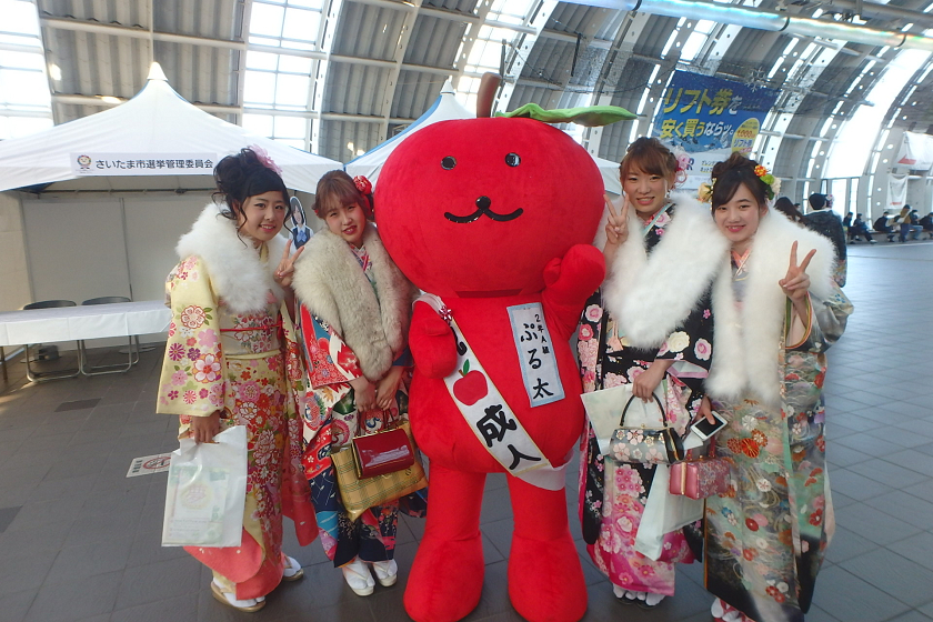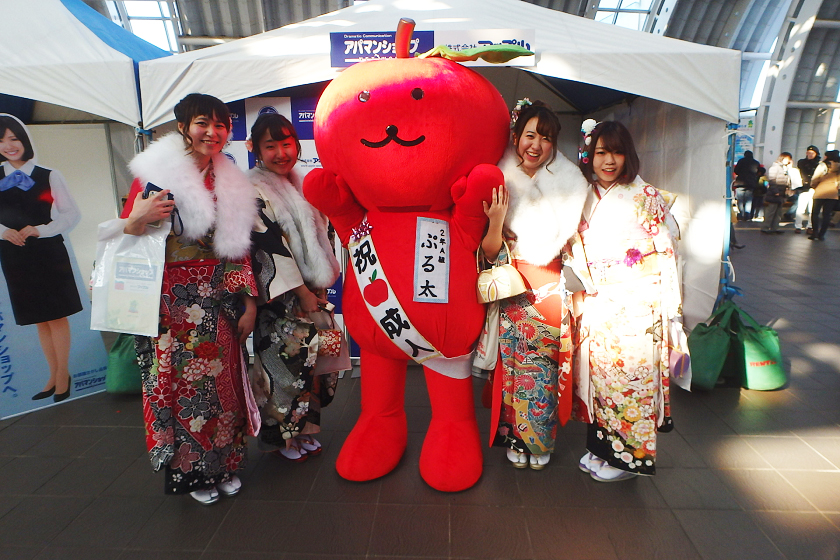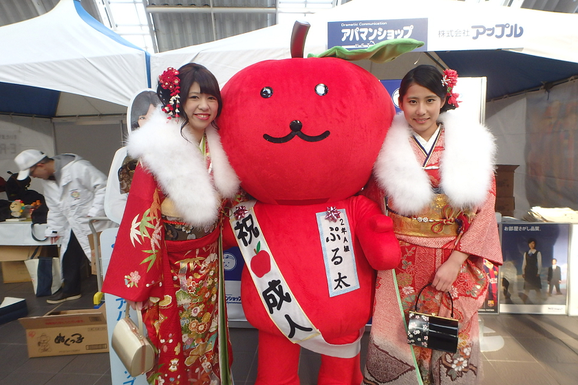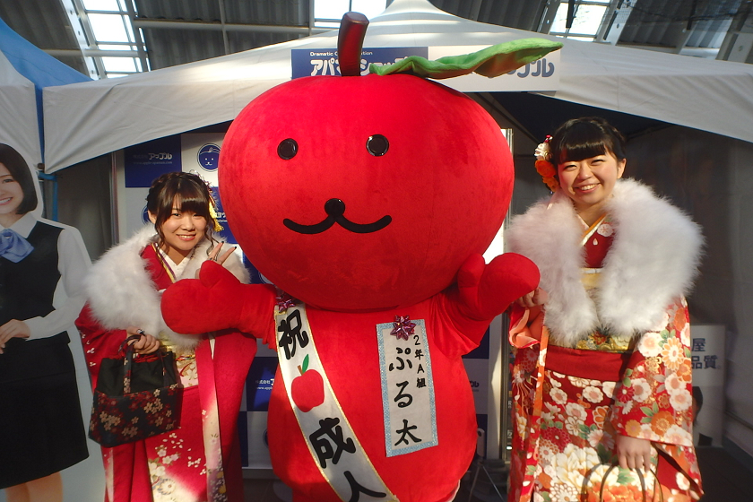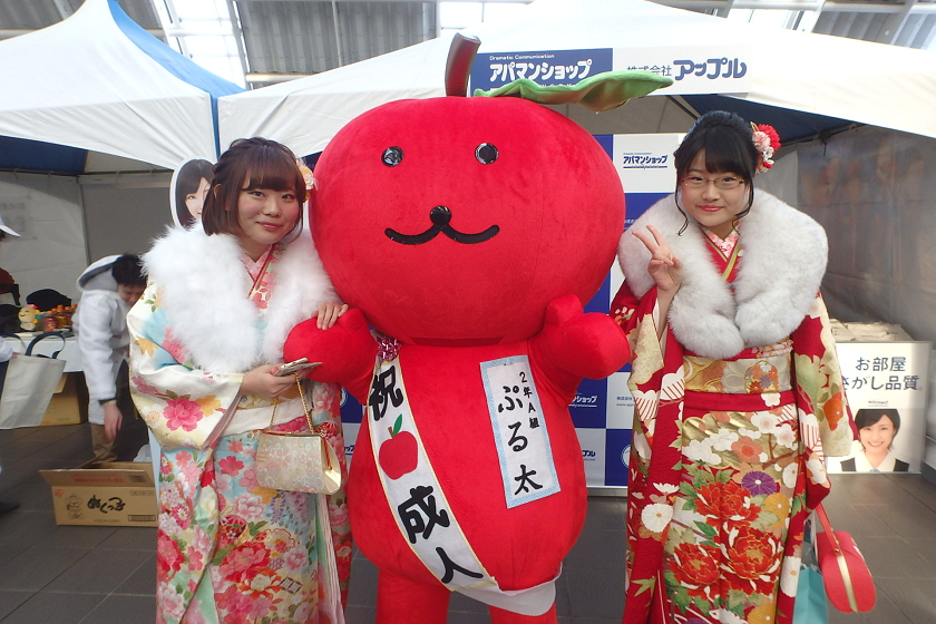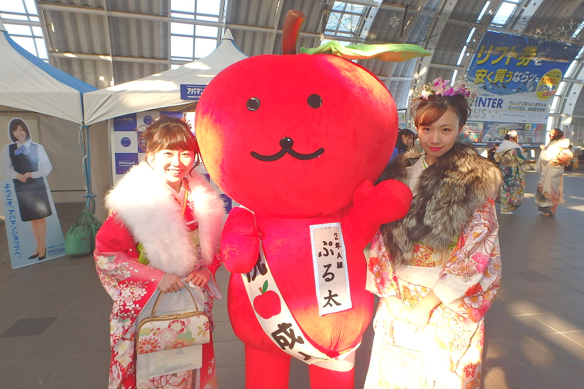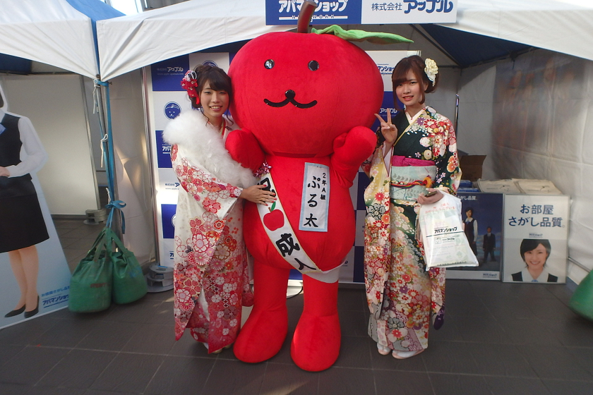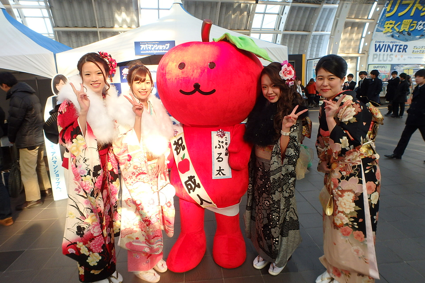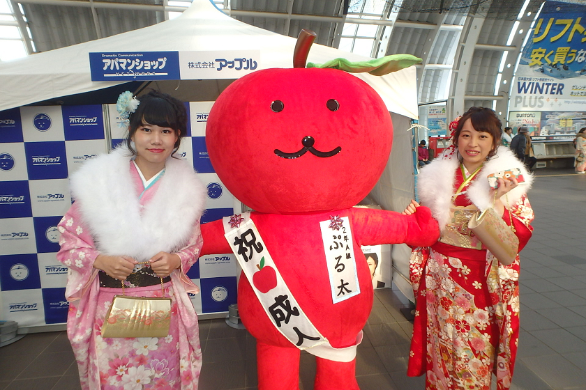 当社、株式会社アップルでは、さいたま新都心駅の改札付近のイベント会場にブース出展させていただきました。当社の公式キャラクター「ぷる太」と新成人のみなさんと記念撮影大会を開催いたしました♪