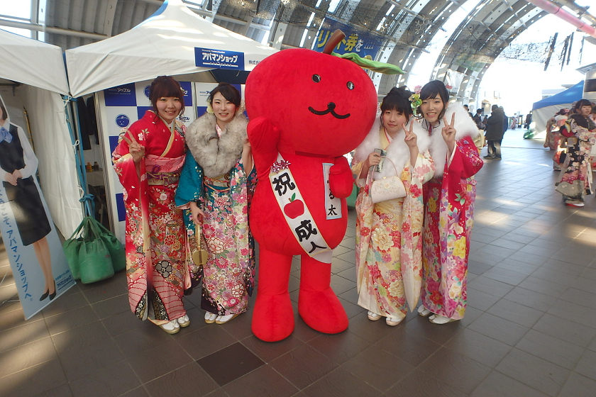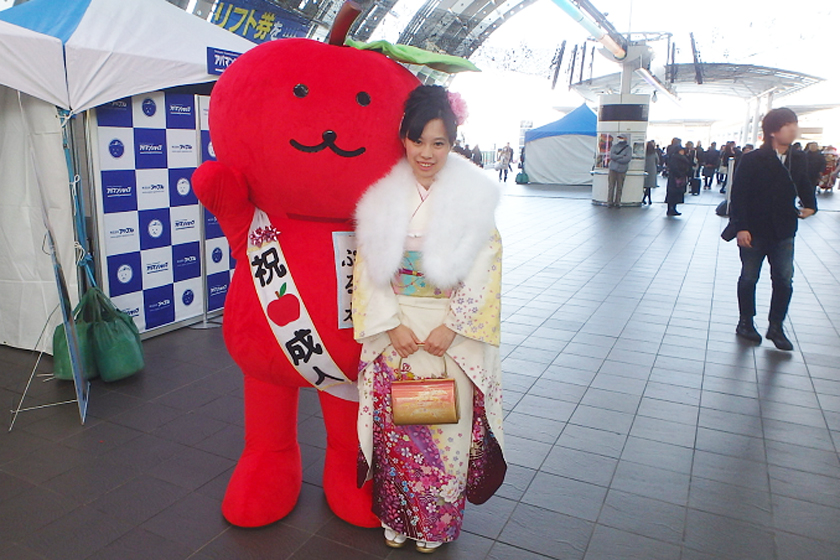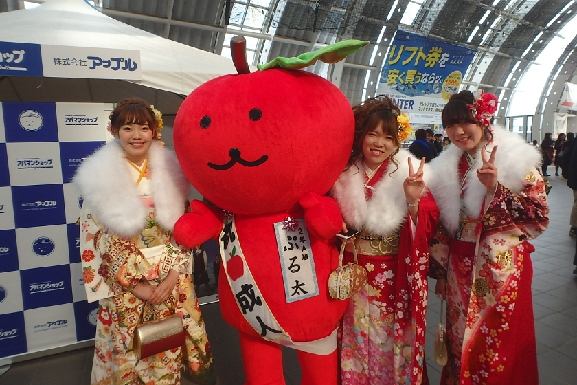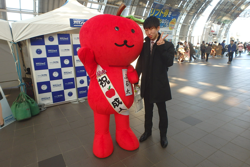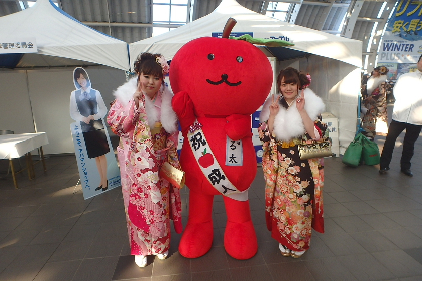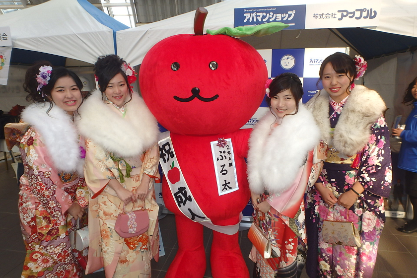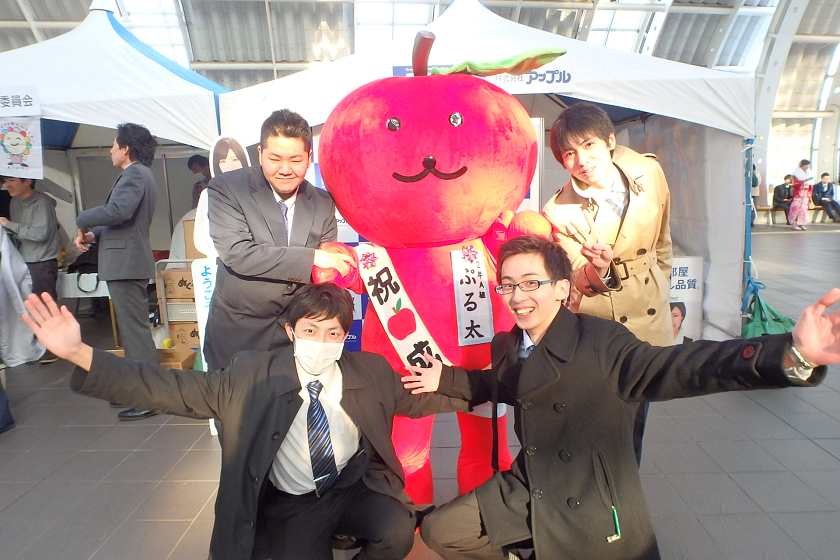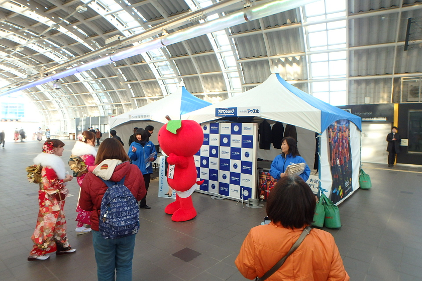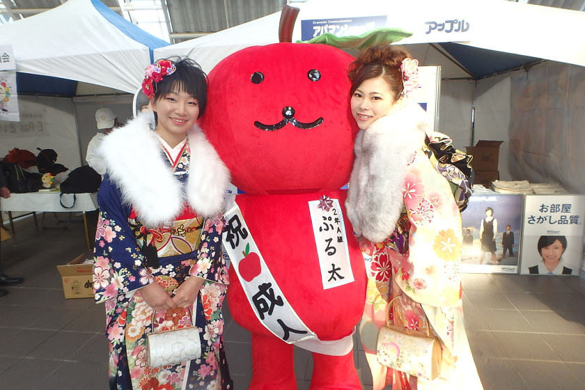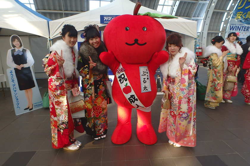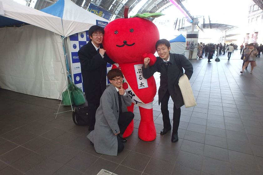 当社、株式会社アップルでは、さいたま新都心駅の改札付近のイベント会場にブース出展させていただきました。当社の公式キャラクター「ぷる太」と新成人のみなさんと記念撮影大会を開催いたしました♪