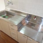 ▼調理スペースもしっかり確保された単身用間取りでは大きめのキッチン。