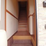 ▼101号室内をご覧ください。玄関扉を開けると2階への階段が見えます。右側にある扉を開くと・・・