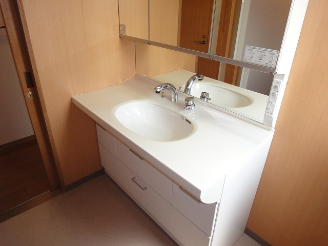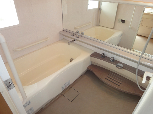 ▼玄関口です。そばにバルコニーがあり、明るくて開放的です。 ▼リビングです。広いリビングには掘りごたつがあります。 ※画像ギャラリーにアップ写真を入れてます。 ▼3口ガスコンロの対面型システムキッチン。 ▼リビングの奥は、和室です。写真上部に見えるのは、天井付のエアコンです。 ▼独立洗面台も大きめ。便利な三面鏡が嬉しいですね♪ ▼大きな鏡が素敵なバスルーム。窓があり、窮屈さがありません。 ▼ウォシュレットタイプのトイレ。専用の手洗いがありますよ。