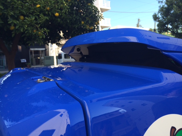 街中を風を切って走るためのウィング。アパマンショップブルーに良く映える。