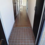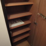 玄関扉はカードキーを採用。開けていただくとすぐにシューズボックスがあるので、季節ごとに使わない靴をしまっておけます。