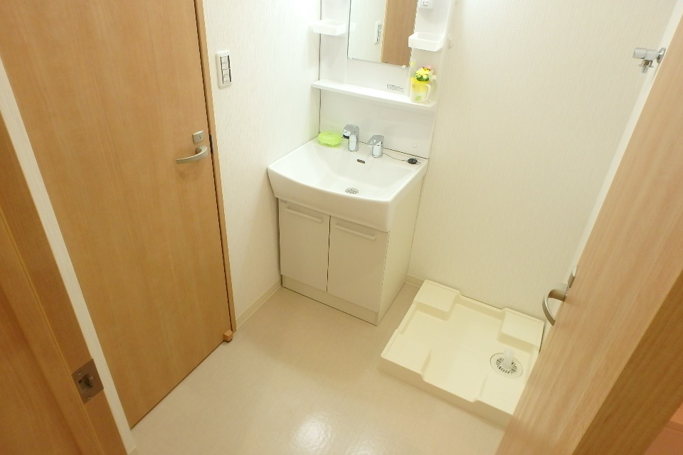 パウダールームです。ハンドシャワータイプの独立洗面台を採用。