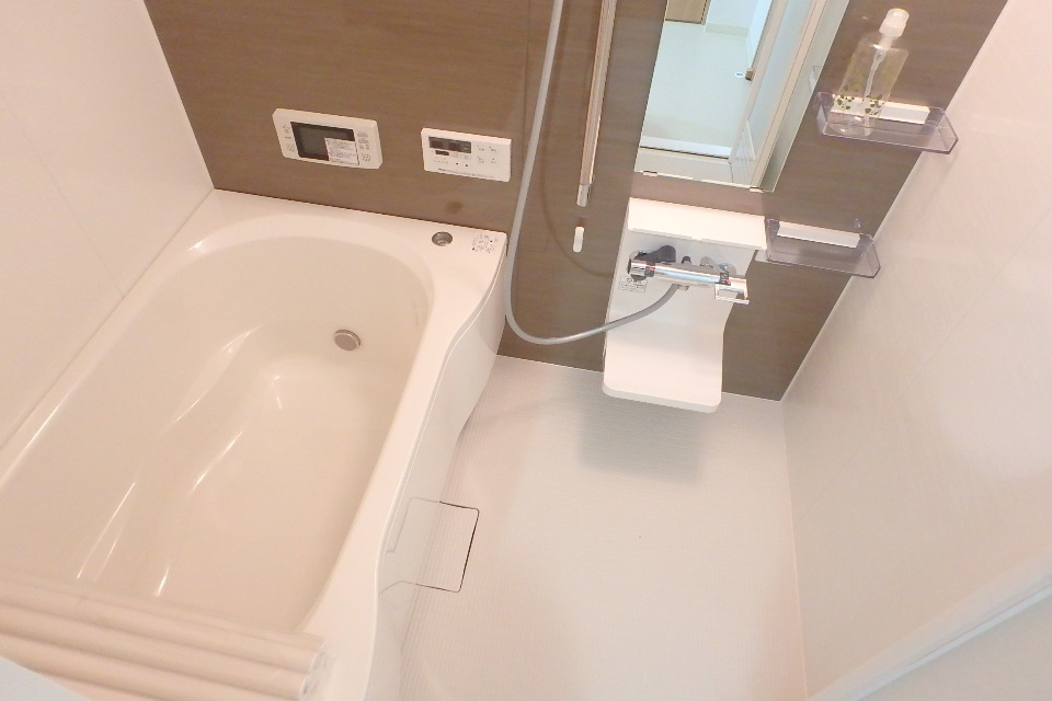 追い焚き、浴室乾燥機能のついたバスルーム。なんと浴室内でテレビが見れます!