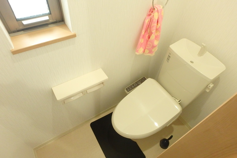 窓のある明るいトイレ。温水洗浄機能付きです。
