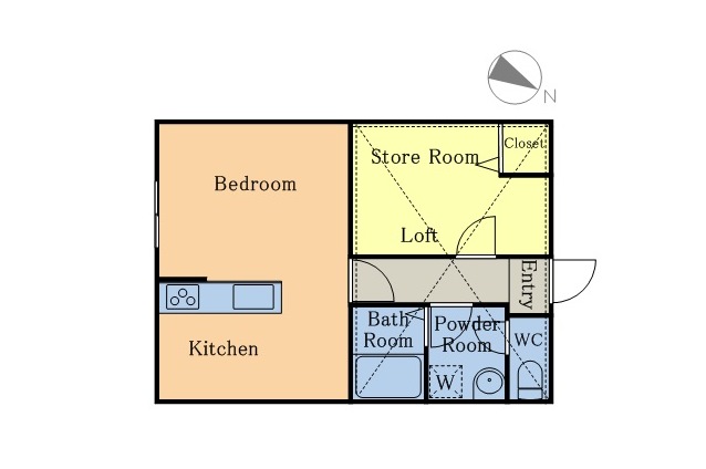 全8戸が同じ間取りの1LDKで、リビング11.5帖、洋室5帖+ロフトの構成です。