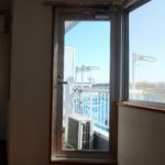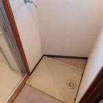 ▼洗濯機置場はお風呂の手前の小部屋にあります。洋服を脱いで、そのまま洗濯機に入れられます。写真には写っておりませんが、給水蛇口の上部にタオル置きがあります。小窓があるので空気の入れ替えも簡単です。