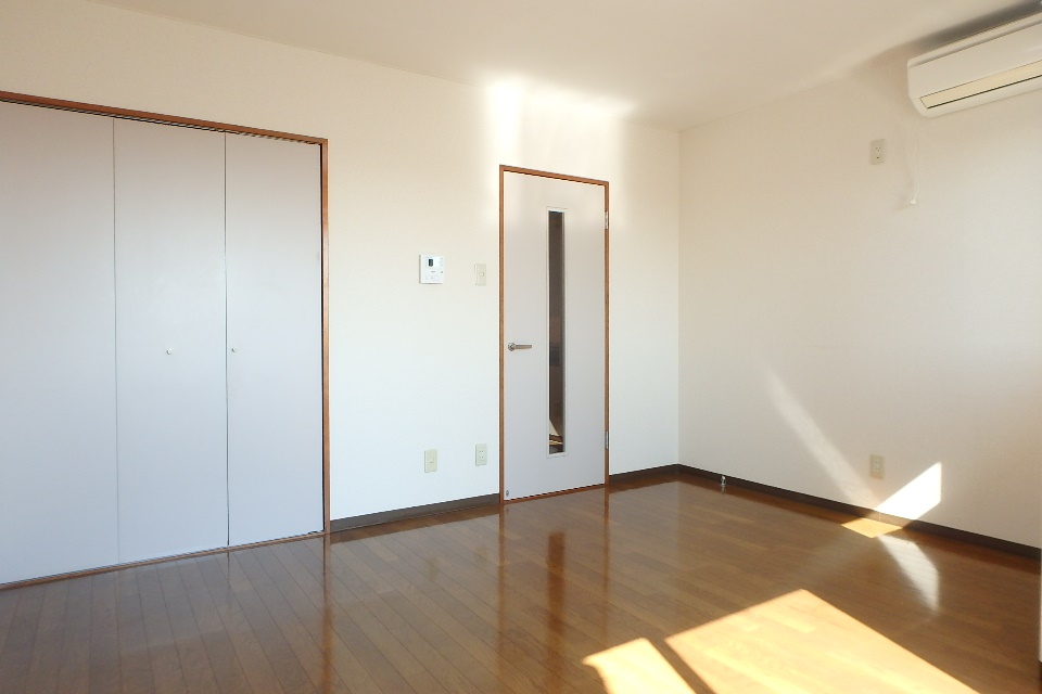 ▼広さは約7.5帖。室内には照明・エアコン・モニターホンとクローゼットがありました。