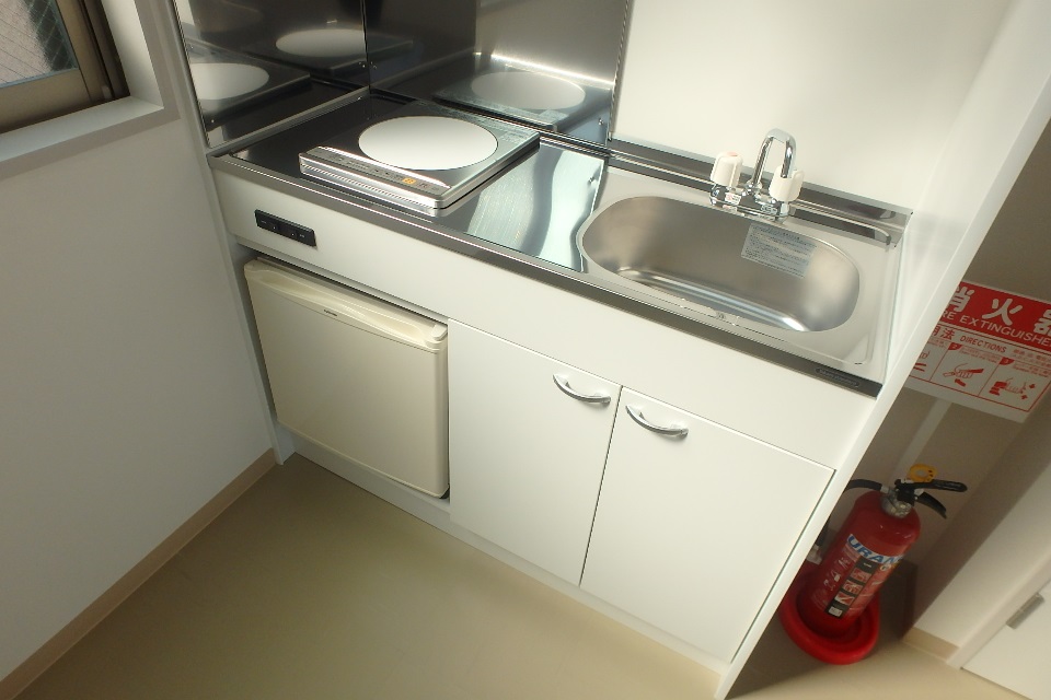 キッチンには場所をとらないミニ冷蔵庫付き。