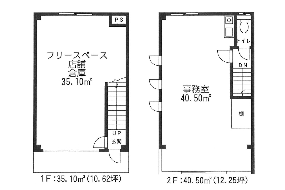 2階の40.50㎡ある事務所スペースです。シンプルで使いやすい広さです。