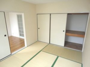 和室になります。収納スペースもしっかり確保されております。畳の香りが落ち着きますよ♪